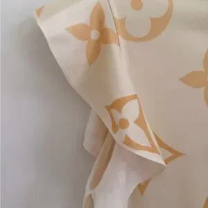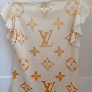 Chic short sleeve top with iconic monogram. Cream base with gold accents. Perfect for stylish outings. Preloved. Excellent condition. Unfortunately no clothing label it was removed. Have original receipt.