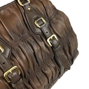 PRADA Nappa Gaufre Brown Leather Satchel Bag