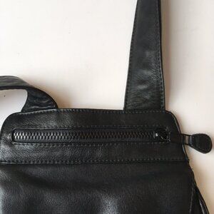 TravelSmith Black Leather Crossbody Bag