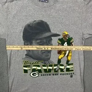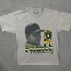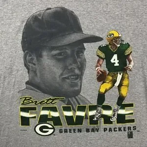 VTG 90s Lee Sport Brett Favre #4 Green Bay Packers NFL Grey T-Shirt USA Size L