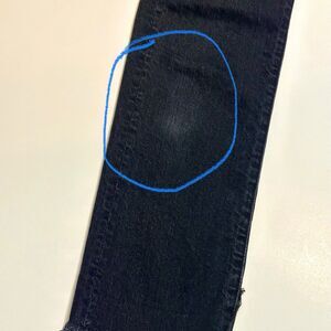 There is some discoloration on the front right leg just below the knee.