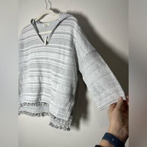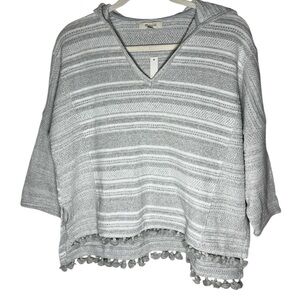 Madewell NWT Short Sleeve Fringe Hoodie Pom Boxy Cut Popover Hoodie