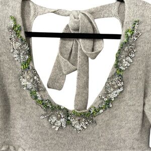 Free People Wool Open Back Sequins Babydoll Sweater Size M Gray 9568