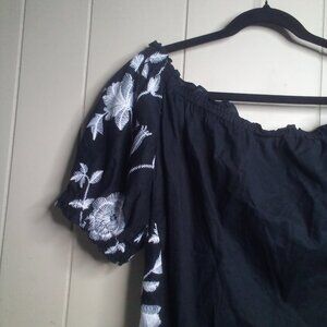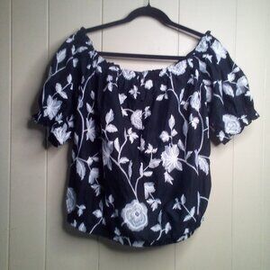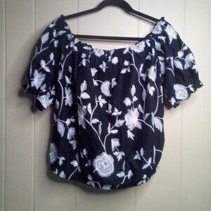 Who What Wear Blouse XXL Cropped Short Sleeve Black White Floral