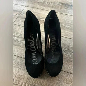 Sam Edelman black studded size 6 pumps heels suede chunky platforms