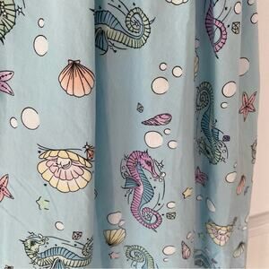 Hell Bunny Pinup Retro Sea Horse Blue Bow Dress size medium in excellent condition. Lined. Measurements laying flat chest 19 inches across and waist 15 1/2 inches across and length 40 1/2 inches