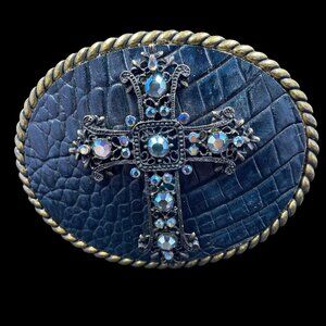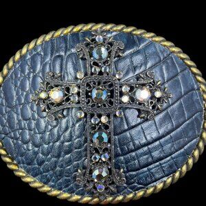 Western Cross Belt Buckle Gothic Vintage Bling Rodeo Cowboy Statement Accessory