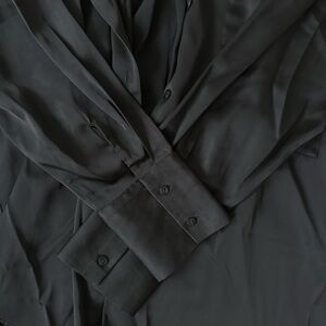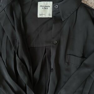 Abercrombie & Fitch Black Oversized Satin Button-Up Shirt