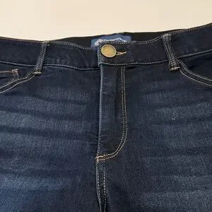 Chic dark blue jeans with a stylish flare. Perfect for versatile wear.