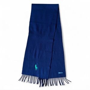 Vintage Polo Ralph Lauren Scarf Navy Green Pony Fringe Fleece Winter Preppy 90s