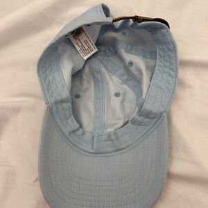 Chic sky blue hat with leather adjustable strap . Ideal for outdoor fun.