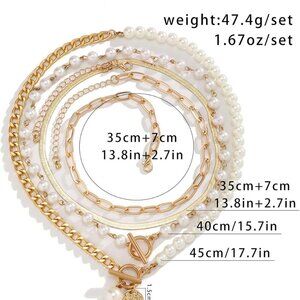 Features: This set includes layered gold necklaces featuring a sleek paperclip pearl chain, a herringbone chain, Cuban chain, and more. Perfectly blending classic and contemporary vibes, these pieces add an artistic, trendy flair to any outfit. Hypoallergenic alloys ensure comfort for long-term wear.