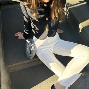 High waisted cigarette trousers. Split hem. So chic. Worn once for photos. Small black mark.