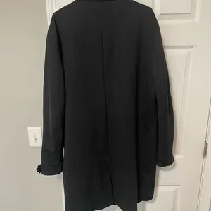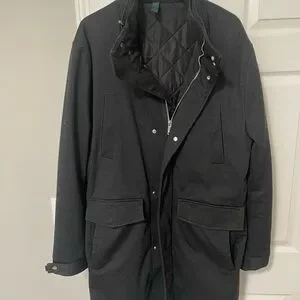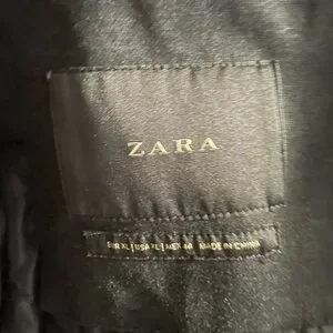 Classic black military jacket by Zara. Features a quilted interior and multiple pockets. Ideal for versatile styling.