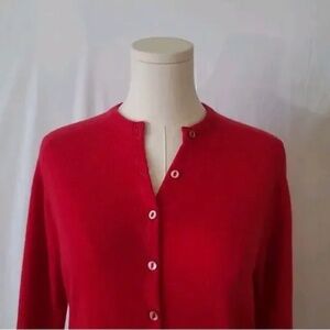 Vintage Pringle Of Scotland Solid Red 100% Pure Cashmere Cardigan Sweater Medium