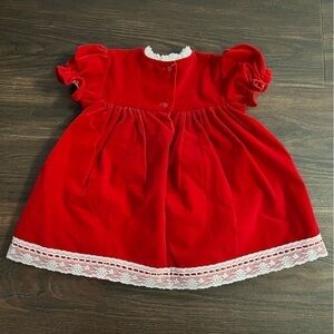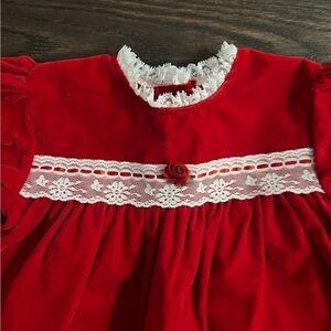 Vintage red velvet white lace dress baby girl 24 months