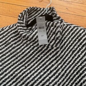 Ann Taylor Black and White Striped jacket with Faux Fur Cuffs