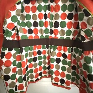 This product is a vintage J CREW women's orange linen blend blazer jacket in size 4. It features a short length, long sleeves, and a button closure. The jacket is lined with 100% cotton and has a regular fit. It is suitable for various occasions such as travel, parties, casual wear, workwear, and business meetings. The jacket's style is classic and preppy, making it a versatile and stylish addition to any wardrobe for the summer, fall, or spring seasons. Item is in good preowned condition. Sold as is.