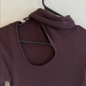 Women’s turtle neck sweater dress in brown with right open shoulder and left leg slit. Worn once and in great condition. Size medium from forever 21