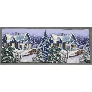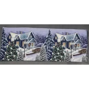Holiday Winter Village Christmas Scene Tapestry Table Runner Winter Decor 12"x64