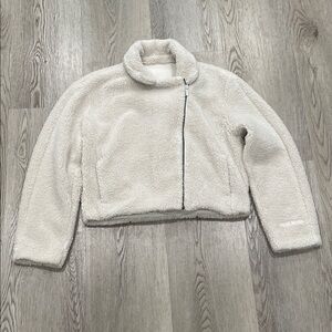 Soft and warm cream fleece jacket with a stylish design. Perfect for chilly days.