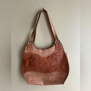 Tooled leather shoulder bag