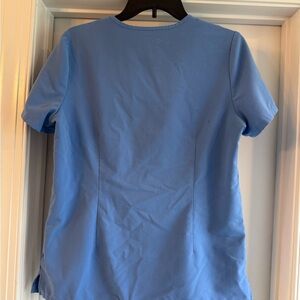 Light blue scrub top by Figs. V-neck design with soft fabric.