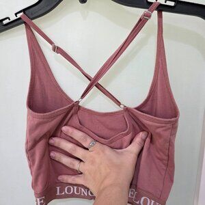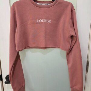 Lounge 3 piece set, Lounge women’s loungewear, Lounge pink sweatpants, Lounge cropped sweatshirt, Lounge bralette top, Lounge M set, Lounge casual jogger set, Lounge raw hem sweatshirt, Lounge comfy matching set, Lounge athleisure outfit