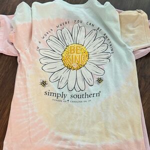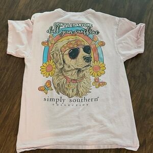 Vibrant Simply Southern t-shirts with unique graphics. Features pink, cream, blue, and navy designs.