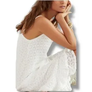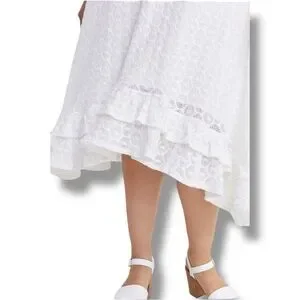 Anthropologie NEW Chic Asymmetrical White Lace Fully Lined Sleeveless Maxi Dress
