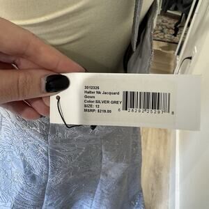 new halston heritage Silver Jaquard Halter Gown High Low Size 12 H