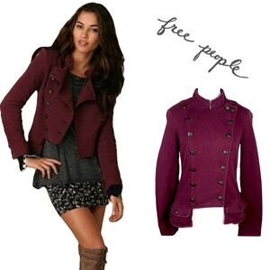 🌹🎖️Free People We The Free Majorette Military Jacket Burgundy Sz 6🎖️🌹