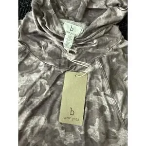 NWT b New York Camo Print Hooded Tunic Top M Long Sleeve Lightweight
