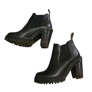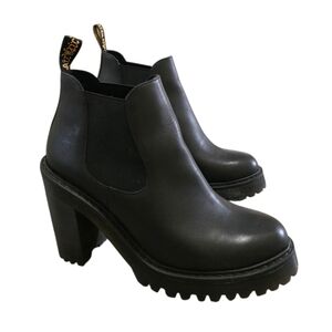 Dr. Martens Hurston Black Leather Heeled Platform Lug Sole Chelsea Boots 9-10