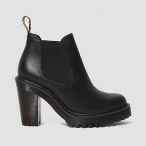Dr. Martens Hurston Black Leather Heeled Platform Lug Sole Chelsea Boots