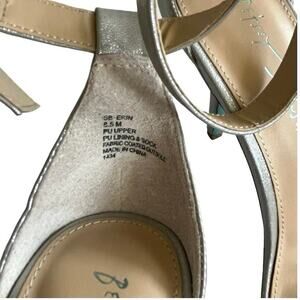 - Adjustable buckle closure at ankle strap