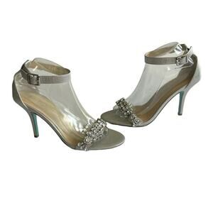 Date Night Out Preppy Glamorous Regency Classy Classic Bling Rhinestones Ankle Strap Silver Satin Wedding Guest Shower Special Occasion Maximalist Bridesmaid Formal Party Designer Bridal Beaded Stiletto High Heel