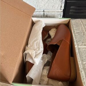 Elegant tan loafers with a smooth leather finish. Ideal for casual and formal wear. Comfortable slip-on design. New in box