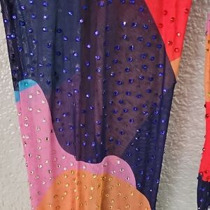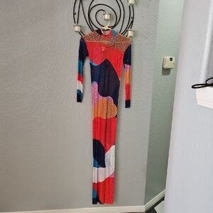 Make a statement with this vibrant long sleeve dress, perfect for any occasion. The bold mix of colors adds a unique touch to your wardrobe. Brand new.