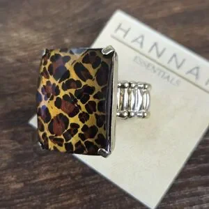 Brand new HANNAH Essentials adjustable leopard print ring. Goldtone metal and large rectangular leopard print centerpiece.