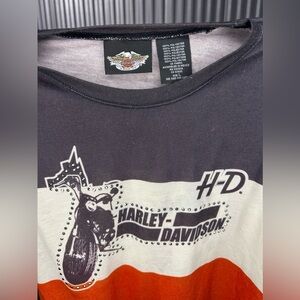 Women’s Vintage Harley Davidson Orange Black Long Sleeve T-Shirt Size Large