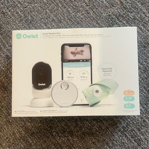 Tracks heart rate, oxygen level, sleep data, high def video with night vision, sound and motion notifications, 2 way audio, room temperature sensor, viewable from anywhere with the Owlet app.