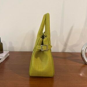 Reformation small patrizia purse in green. Has a snake/lizard-like texture. Features a magnet closure, inside zipper pocket, and comes with a long attachable shoulder strap that's adjustable. Not sold on the site anymore. Brand new condition! Total dupe for The Row Margaux bag