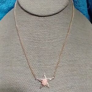 Elegant gold star pendant necklace featuring a pink stone. Perfect for adding a touch of sophistication to any outfit.
