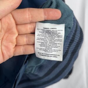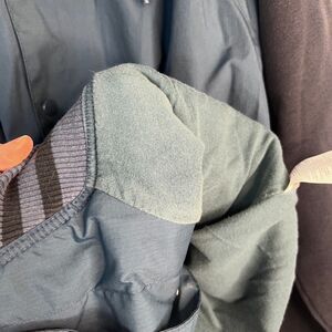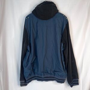 Hooded, long sleeve, snap front, drawstring hood, thumb holes, front pockets, lined