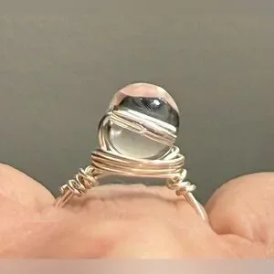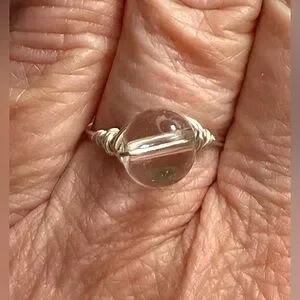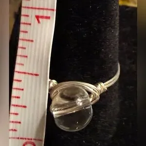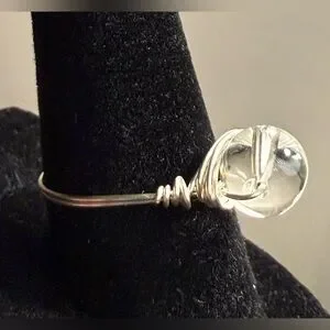 Ring - size 7.25-7.5 - wire wrapped clear round stone. New! Simply beautiful! Unique. See pics for details and sizing.