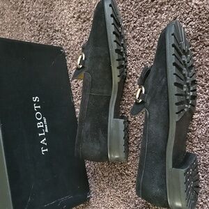 NEW Talbots Black Suede Tassel Loafers 8 M