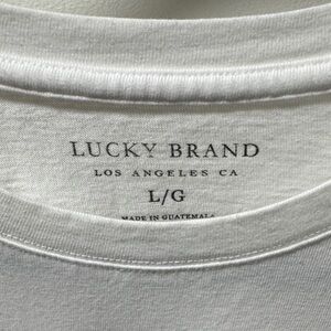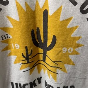 White tee featuring a bold cactus graphic. Accented with yellow and black design. Lucky Brand logo included. So fun to layer with denim shirt or jacket! No rips stains or tear! Pre loved condition. Pet and smoke free home. Reasonable offers considered.