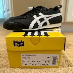Brand new with tags Onitsuka Tiger Mexico 66 SD sneakers in black and white color way. Comes with original box and tags. These are the SD version which uses more premium materials and has skinny laces. Purchased these in Japan but unfortunately they do not fit me! Original sales receipt in last photo. Size 6.5 US women/ 37.5 EU.