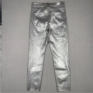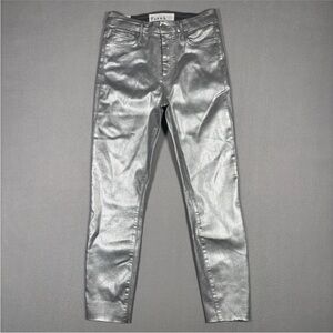 Frank And Eileen Sligo Skinny Jeans Womens 28 Metallic Silver Stretch Saw Hem
